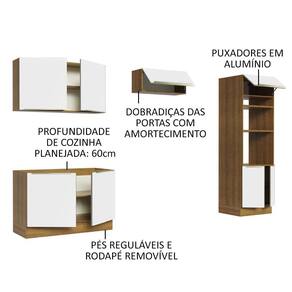 O acabamento da estrutura é em amadeirado Rustic e as portas são em Branco Veludo. É feito em Pintura Poliéster com 7 camadas de proteção resistentes a álcool, água e calor.