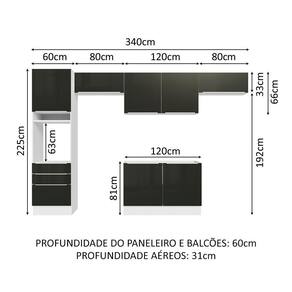 - 60 cm de profundidade nos módulos inferiores e 31 cm nos aéreos