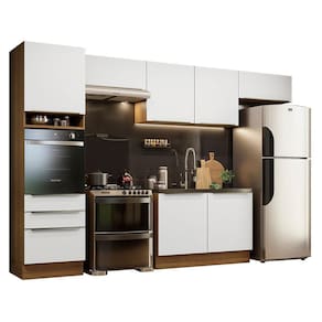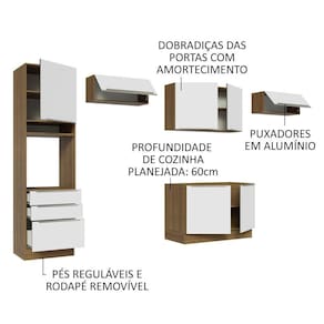A cozinha é totalmente modulada e possui profundidade de cozinha planejada: 60 cm. A fabricação é feita com itens de qualidade superior, que conferem durabilidade e maior vida útil ao móvel.