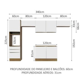 - 60 cm de profundidade nos módulos inferiores e 31 cm nos aéreos