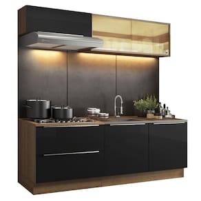 A linha de cozinhas Lux da Madesa é o que existe de mais sofisticado no mercado. O grande destaque são as portas e gavetas que recebem um vidro preto aplicado, detalhe que traz muita elegância ao ambiente.