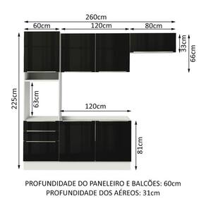 - 60 cm de profundidade nos módulos inferiores e 31 cm nos aéreos