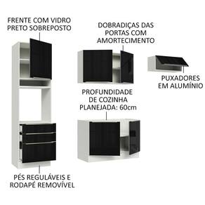 O grande destaque são as portas e gavetas que recebem um vidro preto aplicado, detalhe que traz muita elegância ao ambiente.
