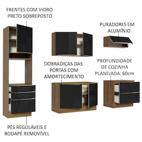 O espaço interno é ótimo, com profundidade de cozinha planejada: 60 cm. Além disso, é fabricada com itens de qualidade superior, como corrediças telescópicas, dobradiças metálicas e amortecedores para o fechamento suave das portas.