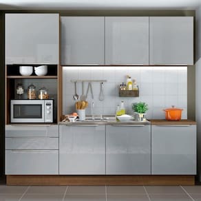 Com ótimo espaço interno, possui profundidade de cozinha planejada: 60 cm. Além disso, é fabricada com itens de qualidade superior, como corrediças telescópicas, dobradiças metálicas e amortecedores para o fechamento suave das portas.