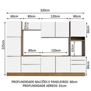 - 60 cm de profundidade nos módulos inferiores e 31 cm nos aéreos
