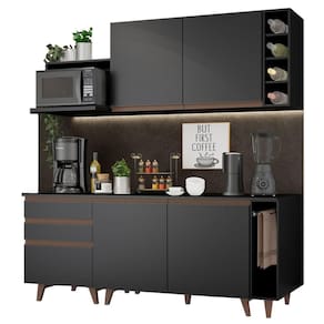 Itens inclusos: - Um (1) Nicho aéreo de 60 cm com espaço para forno - Um (1) Balcão de 60 cm com três (3) gavetas e tampo - Um (1) Aéreo de 120 cm com duas (2) portas - Um (1) Balcão de 120 cm com duas (2) portas e tampo - Um (1) Aéreo de 70 cm com uma (1) porta basculante - Um (1) Balcão porta-panos de 20 cm com duas (2) hastes metálicas e tampo