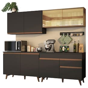Itens inclusos: - Um (1) Aéreo de 120 cm com duas (2) portas - Um (1) Balcão de 120 cm com duas (2) portas e tampo - Um (1) Aéreo de 120 cm com duas (2) portas de correr de vidro reflex - Um (1) Balcão de 120 cm com duas (2) portas sendo uma basculante, uma (1) gaveta e tampo