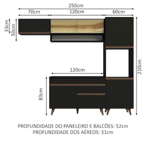 - 52 cm de profundidade no balcão e na torre e 31 cm nos aéreos