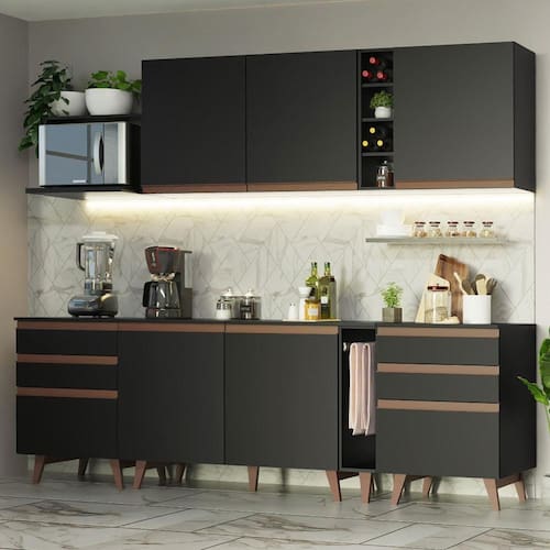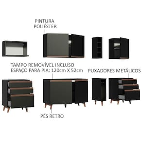 Cozinha Completa Madesa Reims 260006 com Armário e Balcão - Preto - Preto