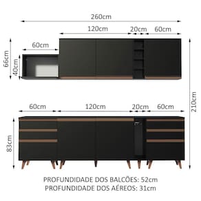 - 52 cm de profundidade nos balcões e na torre e 31 cm nos aéreos