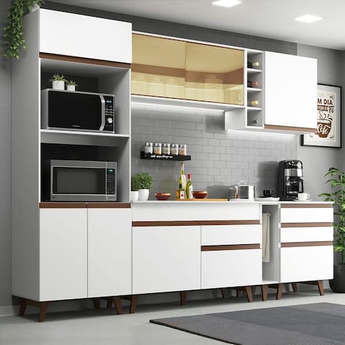 Esta cozinha modulada da linha Reims da Madesa é o móvel perfeito para renovar o seu ambiente com qualidade e design moderno.