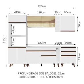 - 52 cm de profundidade nos balcões e na torre e 31 cm nos aéreos