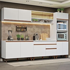 Uma cozinha moderna, espaçosa e fabricada com materiais de qualidade. Confira este modelo da linha Reims da Madesa.