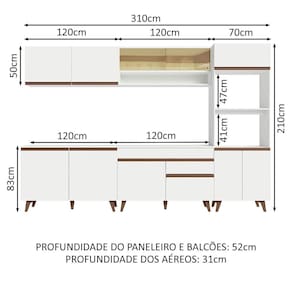 - 52 cm de profundidade nos módulos inferiores e 31 cm nos aéreos