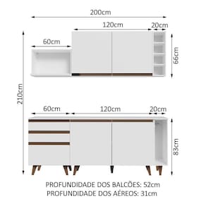 - 52 Cm de profundidade nos balcões e 31 cm nos aéreos
