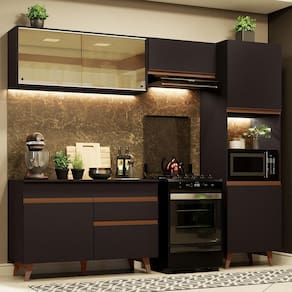 Cozinha Completa Madesa Reims XA250003 com Armário e Balcão - Preto - Preto