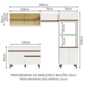 - 52 cm de profundidade no balcão e na torre e 31 cm nos aéreos