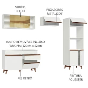 Além disso, o balcão acompanha tampo, que pode ser removido para colocação de pia com espaço de 120 x 52 cm.
