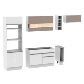 - Um (1) balcão de pia com duas (2) gavetas e uma (1) porta (não acompanha tampo)- Um (1) balcão porta panos com tampo Mood