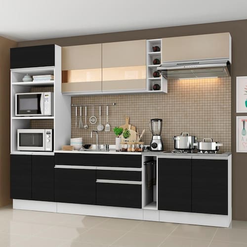 A Cozinha Vicenza Glamy é a campeã de vendas da Madesa. Uma cozinha completa com design moderno e um ótimo acabamento. Se destaca por parecer uma cozinha planejada com ótimo aproveitamento dos espaços internos.