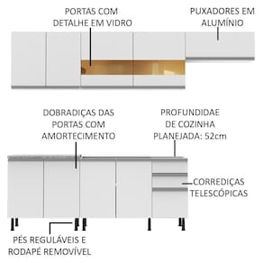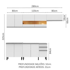 - Dimensões da Cozinha (LxAxP): 280 cm X 225 cm X 52 cm (Aéreos com 31 cm de Profundidade)
