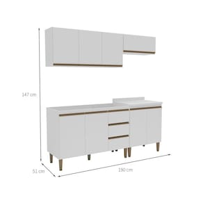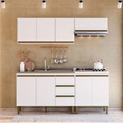 Que tal a Cozinha Margarida?Seu lar merece um espaço especial para preparar refeições incríveis e aproveitar momentos junto com a família. A Cozinha Margarida transforma o ambiente com cores elegantes e acabamentos charmosos, além de garantir a organização perfeita de mantimentos, utensílios e louças, já que inclui armário aéreo e balcão - ela oferece suporte tanto para o preparo das refeições quanto para exibir decorações que valorizam o visual do espaço. Desse jeito, tudo o que você precisa para uma rotina mais prática fica ao alcance, enquanto o bom gosto do lar-style fica em dia. Marca: Modern