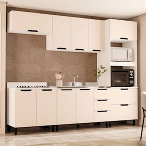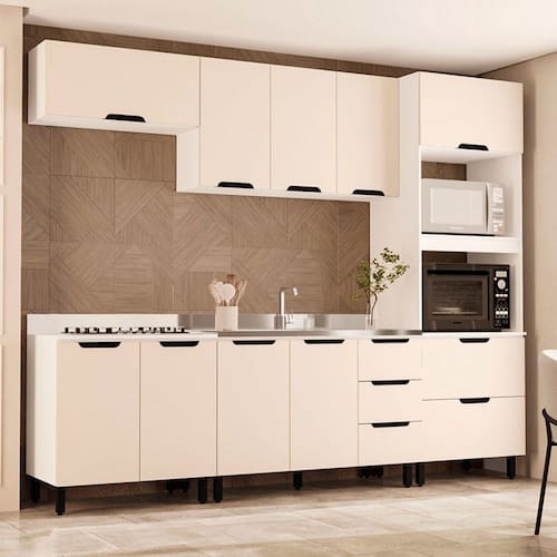 O(a) Cozinha Completa Meena 10 Portas 4 Gavetas 40250055 Branco/Creme - Politorno é produzido em MDF e MDP na escala de brilho Semi-Fosco, e possui um grau de dificuldade de montagem: Médio.