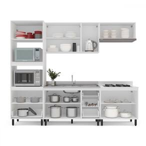 O(a) Cozinha Completa Meena 10 Portas 4 Gavetas 40250055 Branco - Politorno é produzido em MDF e MDP na escala de brilho Semi-Fosco, e possui um grau de dificuldade de montagem: Médio.