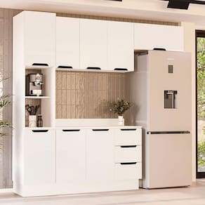 O(a) Cozinha Completa Meena 8 Portas 3 Gavetas 40250072 Branco - Politorno é produzido em MDF e MDP na escala de brilho Semi-Fosco, e possui um grau de dificuldade de montagem: Médio.