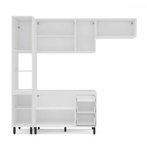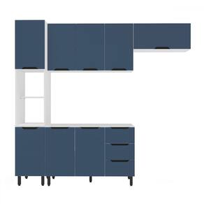 O(a) Cozinha Completa Meena 8 Portas 3 Gavetas Branco/Azul - Politorno é produzido em MDF e MDP na escala de brilho Semi-Fosco, e possui um grau de dificuldade de montagem: Médio.