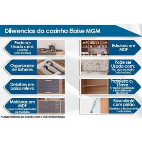 BALCÃO COZINHA C/ TAMPO ELOISE C/ 4 GAVETAS E 1 PORTA BASCULANTE RISCADA 120CM CINAMOMO/PLATINA - MGM Quantidade: 1 unidade(s) Dimensões: Largura: 120 cm Comprimento(Profundidade): 120 cm Altura: 86,5 cm