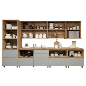 É uma cozinha resistente? Sim, o material MDF de alta qualidade garante resistência e durabilidade. Acabamento da Prateleira: Pintura Escala de Brilho da Prateleira: Fosco Acabamento da Gaveta: Impressão Escala de Brilho da Gaveta: Fosco Acabamento da Porta: Impressão Escala de Brilho da Porta: Fosco Acompanha Tampo: Sim Altura dos Pés: cm Ambiente Principal: Cozinha Balcão Suporta Pia: Não codigo_ean: 7900288200679 Complexidade da Montagem: Alta: deve ser montado por um montador especializado Cor: Marrom/Verde Cor do Produto: Marrom/Verde Escala de Brilho: Fosco Espessura do Tampo: 30 mm Gaveta com Chave: Não Itens Inclusos: 1 Cozinha Completa, Kit Ferragens e Manual de Montagem Linha ou Coleção: Norten Manual de Montagem e Instalação: https://product-hub-prd.madeiramadeira.com.br/150362067/documents/fe73a214-96ce-4d2f-a6da-c1d0c1a19ffa309332173217533576106502.pdf Marca: Nesher Móveis Material da Corrediça: Metálica Material da Dobradiça/Corrediça da Porta: Metálica Material da Gaveta: MDF Material da Porta: MDF Material da Prateleira: MDF Material do Tampo: MDF Medida de cada item (A x L x P): PANELEIRO 2 PORTAS 2 GAVETAS 70 cm A: 228 cm P: 52 cm L: 70 cm ARM. MICRO-ONDAS 1 PORTA BASC. 70 cm A: 80 cm P: 42 cm L: 70 cm ARMÁRIO AÉREO 2 PORTAS 120 cm A: 80 cm P: 32 cm L: 120 cm BALCÃO 1 PORTA 4 GAVETAS 120 cm A: 91 cm P: 52 cm L: 120 cm BALCÃO 1 PORTA 1 GAVETA 80 cm A: 91 cm P: 52 cm L: 80 cm BALCÃO 1 PORTA 1 GAVETA 70 cm A: 91 cm P: 52 cm L: 70 cm ARMÁRIO AÉREO 2 PORTAS 80cm A: 80 cm P: 32 cm L: 80 cm BALCÃO 1 PORTA 4 GAVETAS 120 cm A: 91 cm P: 52 cm L: 120 cm BALCÃO 1 PORTA 1 GAVETA 80 cm A: 91 cm P: 52 cm L: 80 cm PAINEL DE ILHA CANELADO 200 cm A: 100 cm P: 35,5 cm L: 200 cm modular: Sim Necessita Montagem: Sim O Balcão Acompanha Pia: Não Origem do Produto: Nacional Peso: 457,4 kg Peso Máximo por Gaveta: 5 kg Peso Máximo por Prateleira: 10 kg Possui Portas: Sim Possui Prateleiras: Sim Possui recorte para Cooktop: Não Possui Vidro: Não Produto Montado: Sim Recomendações de Uso, Manutenção e Limpeza: Utilizar pano macio levemente umedecido e na sequencia pano macio seco. Sistema de Montagem: Parafusos. Tamanho Indicado da Pia: . Tipo de Corrediça da Gaveta: Metálica Telescópica Tipo de Dobradiça da Porta: 35 mm Tipo de Dobradiça/Corrediça da Porta: 35 mm Tipo de Puxador da Gaveta: Embutido Tipo de Puxador da Porta: Embutido Marca: Não Informado