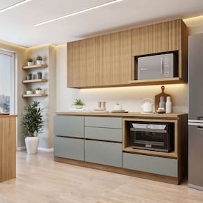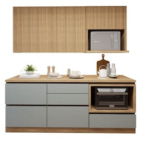 Beleza, funcionalidade e organização em um só conjunto! Nossa cozinha com 4 peças traz armários aéreos com 3 portas em elegante acabamento ripado e nicho para micro-ondas, unindo design moderno e praticidade no dia a dia. O balcão oferece espaço inteligente com nicho para forno, gavetas equipadas com organizador de talheres e compartimento exclusivo para porta-temperos, tudo pensado para facilitar sua rotina e manter tudo no lugar. Produzida em 100% MDF, com acabamento de alto padrão, é a escolha ideal para quem quer transformar a cozinha em um ambiente funcional e sofisticado!
