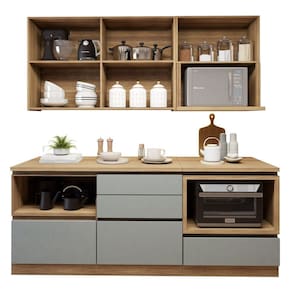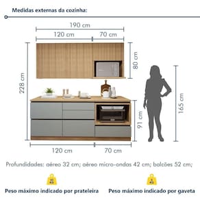 É um armário resistente? Sim, o material MDF de alta qualidade garante resistência e durabilidade. Acabamento da Prateleira: Pintura Escala de Brilho da Prateleira: Fosco Acabamento da Gaveta: Impressão Escala de Brilho da Gaveta: Fosco Acabamento da Porta: Impressão Escala de Brilho da Porta: Fosco Acabamento dos Pés: Pintura Acompanha Tampo: Sim Altura dos Pés: 10 cm Altura Máxima dos Pés: 10.0000 Ambiente Principal: Cozinha Balcão Suporta Pia: Não codigo_ean: 7900288202062 Complexidade da Montagem: Alta: deve ser montado por um montador especializado Cor: Marrom/Verde Cor do Produto: Marrom/Verde Escala de Brilho: Fosco Espessura do Tampo: 30 mm Gaveta com Chave: Não Itens Inclusos: 1 Cozinha Completa, Kit Ferragens e Manual de Montagem Linha ou Coleção: Norten Manual de Montagem e Instalação: https://product-hub-prd.madeiramadeira.com.br/948894956/documents/dbc637a8-6077-4d43-9bb0-f2b871a1d24b309344673217533588366255.pdf Marca: Nesher Móveis Material da Corrediça: Metálica Material da Dobradiça/Corrediça da Porta: Metálica Material da Gaveta: MDF Material da Porta: MDF Material da Prateleira: MDF Material do Tampo: MDF Material dos Pés: MDF Medida de cada item (A x L x P): Balcão 1 Porta4 Gavetas 120 Cma: 91 Cm P: 52 Cm L: 120 Cm Armário Aéreo2 Portas 120 Cma: 80 Cm P: 32 Cm L: 120 Cm Arm. Micro-ondas1 Porta Basc. 70 Cma: 80 Cm P: 42 Cm L: 70 Cm Balcão Forno1 Gaveta 70 Cma: 91 Cm P: 52 Cm L: 70 Cm modular: Sim Necessita Montagem: Sim O Balcão Acompanha Pia: Não Origem do Produto: Nacional Pés Reguláveis: Não Peso: 158,72 kg Peso Máximo por Gaveta: 5 kg Peso Máximo por Prateleira: 10 kg Possui Pés: Rodapé Possui Portas: Sim Possui Prateleiras: Sim Possui recorte para Cooktop: Não Possui Rodízio: Não Possui Vidro: Não Produto Montado: Sim Recomendações de Uso, Manutenção e Limpeza: Utilizar pano macio levemente umedecido e na sequencia pano macio seco. Sapatas Niveladoras: Não Sistema de Montagem: Parafusos. Tamanho Indicado da Pia: . Tipo de Corrediça da Gaveta: Metálica Telescópica Tipo de Dobradiça da Porta: 35 mm Tipo de Dobradiça/Corrediça da Porta: 35 mm Tipo de Puxador da Gaveta: Embutido Tipo de Puxador da Porta: Embutido Marca: Não Informado