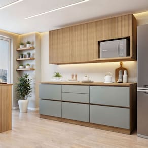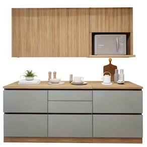 Estilo e organização que transformam sua cozinha! Nosso conjunto de cozinha com 4 peças é produzido 100% em MDF e une funcionalidade com design contemporâneo. Os armários aéreos contam com 3 portas ripadas que trazem um toque sofisticado e moderno ao ambiente, além de ótimo espaço interno para armazenar utensílios do dia a dia. Os balcões inferiores oferecem gavetas amplas e bem distribuídas, perfeitas para manter tudo sempre à mão com praticidade. Com acabamento impecável e estrutura resistente, nosso conjunto de armários para cozinha é ideal para quem busca beleza, durabilidade e organização em um só lugar!