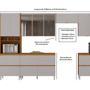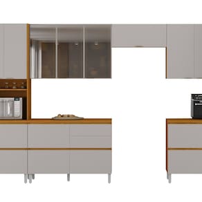 em MDF 1,5cm, ela oferece um acabamento de alto padrão e durabilidade excepcional. O design moderno inclui puxadores embutidos que conferem um visual impecável, portas chanfradas que adicionam um toque de requinte, e gavetões espaçosos que facilitam a organização dos utensílios. Vidro temperado na cor reflecta. Mais sofisticação para o ambiente. Tampo de 2,5 cm resistente a altas temperaturas, até 120ºC. Corrediças telescópicas de 3 estágios. Dobradiças com tecnologia Slow Motion e para as portas horizontais pistão a gás para abrir suave Acabamento da Prateleira: Pintura Escala de Brilho da Prateleira: Semi-Brilho Acabamento da Gaveta: Pintura Escala de Brilho da Gaveta: Semi-Brilho Acabamento da Porta: Pintura Escala de Brilho da Porta: Semi-Brilho Material do Puxador da Porta: Alumínio Acompanha Rodapé Decorativo: Não Acompanha Tampo: Sim Altura dos Pés: 14,5 cm Altura Máxima dos Pés: 14.5000 Ambiente Principal: Cozinha Balcão Suporta Pia: Sim codigo_ean: 7900288194633 Complexidade da Montagem: Alta: deve ser montado por um montador especializado Cor: Cinamomo/Cinza Cor do Produto: Cinamomo/Cinza Cor Interna: Cinamomo Escala de Brilho: Semi-Brilho Espessura do Material da Estrutura: 15 mm Espessura do Tampo: 25 mm Gaveta com Chave: Não Itens Inclusos: 1 Cozinha Completa, Kit Ferragens e Manual de Montagem Linha ou Coleção: Lumina Manual de Especificação Técnica: https://product-hub-prd.madeiramadeira.com.br/294363554/documents/bdebe880-e837-44c3-8dbf-4f87121850593055376267917519179501867.pdf Manual de Montagem e Instalação: https://product-hub-prd.madeiramadeira.com.br/294363554/documents/a0cf2295-31db-4898-8e28-c694471f72613055375267917519179421664.pdf Marca: Itatiaia Material da Corrediça: Metálica Material da Dobradiça/Corrediça da Porta: Metálica Material da Gaveta: MDF Material da Porta: MDF Material da Prateleira: MDF Material do Fundo: HDF Material do Tampo: MDF Material dos Pés: Plástico Medida de cada item (A x L x P): Paneleiro (230x70x53,5), Armário 3p (80x120x31), Armário 2p (80x80x31), Armário 1p (33,8x80x31), Balcão 120 (90x120x53) Balcão 80 (90x50x53) medias em centímetros modular: Sim Necessita Montagem: Sim O Balcão Acompanha Pia: Não Origem do Produto: Nacional Pés Reguláveis: Sim Peso: 210 kg Peso Máximo por Gaveta: 5 kg Peso Máximo por Prateleira: 12 kg Possui Pés: 13 Possui Portas: Sim Possui Prateleiras: Sim Possui recorte para Cooktop: Não Possui Rodízio: Não Possui Vidro: Sim Produto Montado: Sim Recomendações de Uso, Manutenção e Limpeza: Limpeza com Pano Umido Sapatas Niveladoras: Sim Sistema de Montagem: Parafuso e Cavilha Suporta Até (kg): 240 kg Tamanho Indicado da Pia: 120x53cm Tipo de Corrediça da Gaveta: Metálica Telescópica Tipo de Dobradiça da Porta: 35 mm Tipo de Dobradiça/Corrediça da Porta: 35 mm Tipo de Puxador da Gaveta: Embutido Tipo de Puxador da Porta: Externo