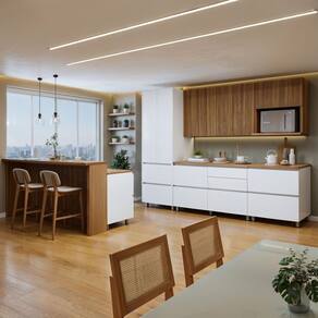 Beleza, praticidade e um toque de aconchego! Nossa Cozinha 8 Peças é a escolha certa para transformar seu ambiente em um espaço funcional e cheio de estilo. Conta com um paneleiro super espaçoso para manter panelas e utensílios sempre organizados, dois armários aéreos com portas ripadas e tecnologia anti impacto que evita batidas, além de balcões amplos, incluindo um modelo preparado para receber a pia com praticidade. E o destaque especial: uma charmosa ilha central, ideal para servir petiscos, apoiar refeições rápidas ou reunir os amigos enquanto o prato principal fica pronto.