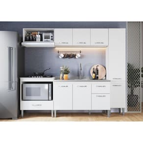 DADOS TÉCNICOS: - Peso do Produto: 43 kg - Puxador: ABS injetado - Capacidade de montagem: Média - Esse item Não acompanha pia de inox e nem utensílios.? - Corrediças: Metálicas - Prateleira: 1 Prateleira interna no Balcão de pia e 3 prateleiras internas - Pés: Cônicos com Regulagem de Altura - A pia e o Tampo não acompanham o produto