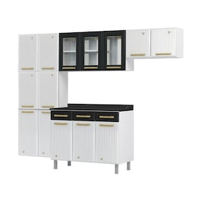 A Cozinha Completa Modulada Aço 4 Peças com Balcão com Tampo Multimóveis CR20370 é o que há de mais moderno e bonito em móveis de aço para deixar seu ambiente mais prático e cheio de personalidade. Esta configuração é completa, perfeita para atender às mais variadas exigências de armazenamento, bem como oferecer toda a qualidade. Todos os módulos são robustos - fabricados inteiramente em aço - e passam por pintura eletrostática de acabamento brilhoso, um processo que confere qualidade, proteção anticorrosiva e mais resistência ao móvel. O espaço interno do paneleiro é perfeito para acomodar panelas, louças, travessas ou alimentos - de maneira organizada e muito funcional. O armário aéreo é um daqueles itens queridinhos para armazenar e também decorar a cozinha, além dos belos vidros serem serigrafados e temperados, para maior segurança. O balcão com tampo em MDP possui 3 gavetas que podem acomodar diversos utensílios para estarem sempre à mão. A estrutura interna das gavetas é de polipropileno, um material muito rígido, resistente e fácil de lavar. As delicadas linhas verticais das portas desta cozinha inspiradas na tendência atual da decoração - em combinação com o aplique em alto relevo do diamante e o belo puxador em ABS, trazem estilo e beleza para qualquer ambiente.