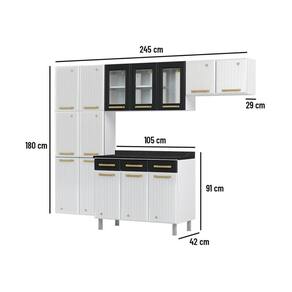 Altura: 180cm | Largura: 245cm | Profundidade: 42cm (Balcão) - 29cm (Armários)