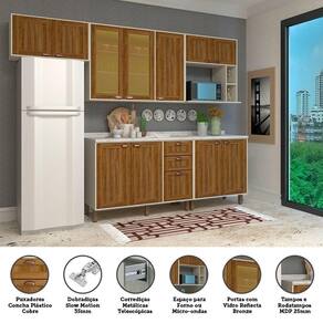 Cozinha Completa Modulada Com 5 Peças E Tampo Sofia Luciane Móveis Pátina Ff Com Moscatto Ff Desenvolvida com materiais de altissima qualidade, a Cozinha Sofia oferece excelente distribuicao de espaco interno, dobradicas Slowmotion com amortecedor incorporado para fechamento suave das portas. Puxadores plasticos na cor Bronze e pes em Ps (poliestireno) na cor champagne com regulagem de altura. Caracteristicas: Estrutura: (Corpo/Caixaria) MDP 15mm Acabamento: Patina FF (Finish Foil) Frontal: MDF 18mm Acabamento: Moscatto FF (Finish Foil) Frontais: Vidro Reflecta Bronze Quantidade de Portas: 11 Tipo de Abertura das Portas: Abrir/Bater Tipo de Dobradicas: Metalica 35mm Slow motion Quantidade de Gavetas: 3 Tipo de Corredicas: Telescopicas Tipo de Puxador: Plastico - Bronze Tipo de Pes: P S - Champagne Sistema de Montagem: Cavilhas, Parafusos e Minifix Garantia: 3 meses