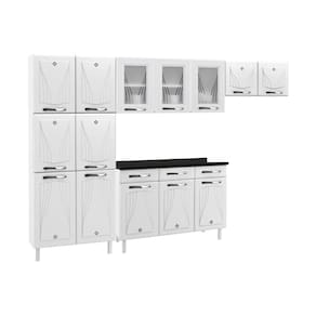 Conteúdo da Embalagem: 1 (um) Paneleiro 80cm 1 (um) Armário Aéreo 80cm 1 (um) Armário Aéreo 120cm 1 (um) Balcão com Tampo 120cm Kit Ferragem Manual de Montagem