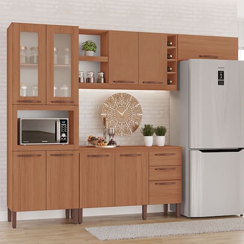 Apresentamos a Cozinha Completa Modulada Larissa! Moderna e elegante, com acabamento em pintura Pintura U.V. Touch com 7 camadas de proteção. Seus puxadores anatômicos dão um charme a parte a esta obra de arte. Acompanha nichos para embelezá-la ainda mais com possibilidade de decoração, além de acompanhar adegas, para organizar bebidas diversas. Espaço reservado para micro-ondas, enquanto os pistões a gás e corrediças telescópicas agregam sofisticação a esta obra de arte. Conta ainda com portas portando vidros texturizados e um excelente espaço interno.