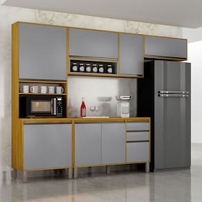 A Cozinha Completa 4 Peças 8 Portas 2 Gavetas Nala é a solução perfeita para quem busca praticidade, organização e design moderno em um único conjunto. Composto pelo Armário Geladeira 1 Porta, Armário Porta Condimento, Paneleiro 2 Portas e Balcão 3 Portas, oferece amplo espaço de armazenamento para utensílios, mantimentos, espaço para o micro-ondas, garantindo que sua cozinha fique organizada e funcional. Com oito portas e duas gavetas, esse conjunto permite otimizar o ambiente sem perder a elegância. Seu design sofisticado se adapta a diferentes estilos, transformando sua cozinha em um espaço prático e harmonioso, perfeito para facilitar o seu dia a dia.