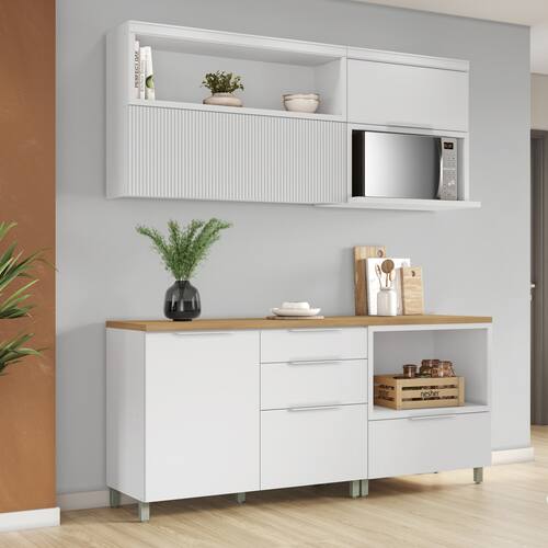 Espaço Para o Dia a Dia O destaque desse conjunto fica por conta do balcão, com a maior altura útil disponível no mercado, oferece mais espaço para armazenar utensílios e mantimentos, além de contar com pés menores de 10cm (com ajuste adicional de 2,5cm).
