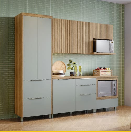 Cozinha Completa Nesher Paris 5 Peças 270cm Balcão Forno Nicho Micro-ondas Verde e Nature entrega elegância, praticidade e durabilidade!