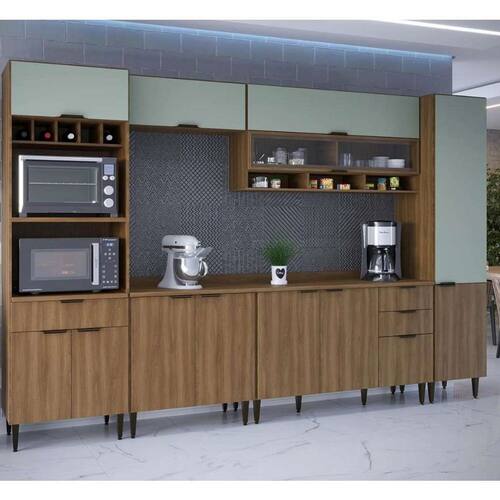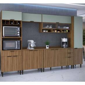 cozinha completa paris 12 pt 4 gv nogal e verde - Marrom