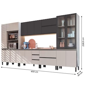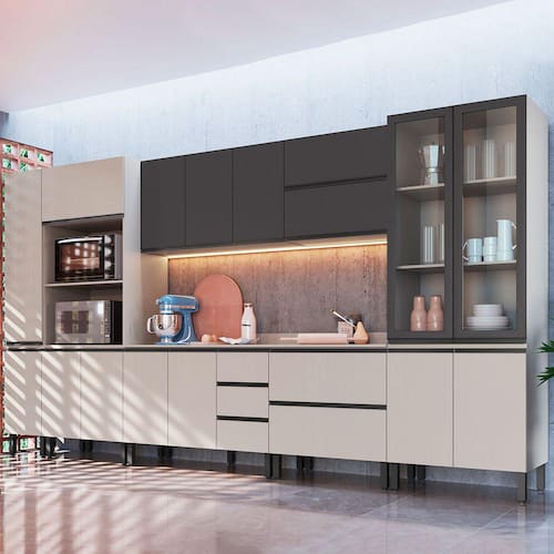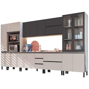 O(a) Cozinha Completa Plátano 16 Portas 5 Gavetas Fumê/Grafite - Quiditá Móveis é produzido em MDP na escala de brilho Semi-Brilho, e possui um grau de dificuldade de montagem: Médio.