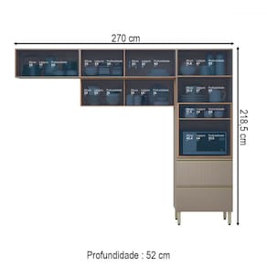 O(a) Cozinha Completa Proença 5 Portas 2 Gavetas com Vidro Nogueira/Nude Prime Tx Dp270 - Demobile é produzido em MDF e Vidro na escala de brilho Fosca com Textura, e possui um grau de dificuldade de montagem: Difícil.